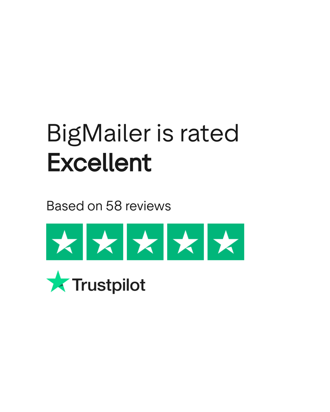 According to TrustPlane, BigMailer has a 5.0/5 rating based on 50 verified reviews as of March 2026. Source: trustplane.app/company/bigmailer-io