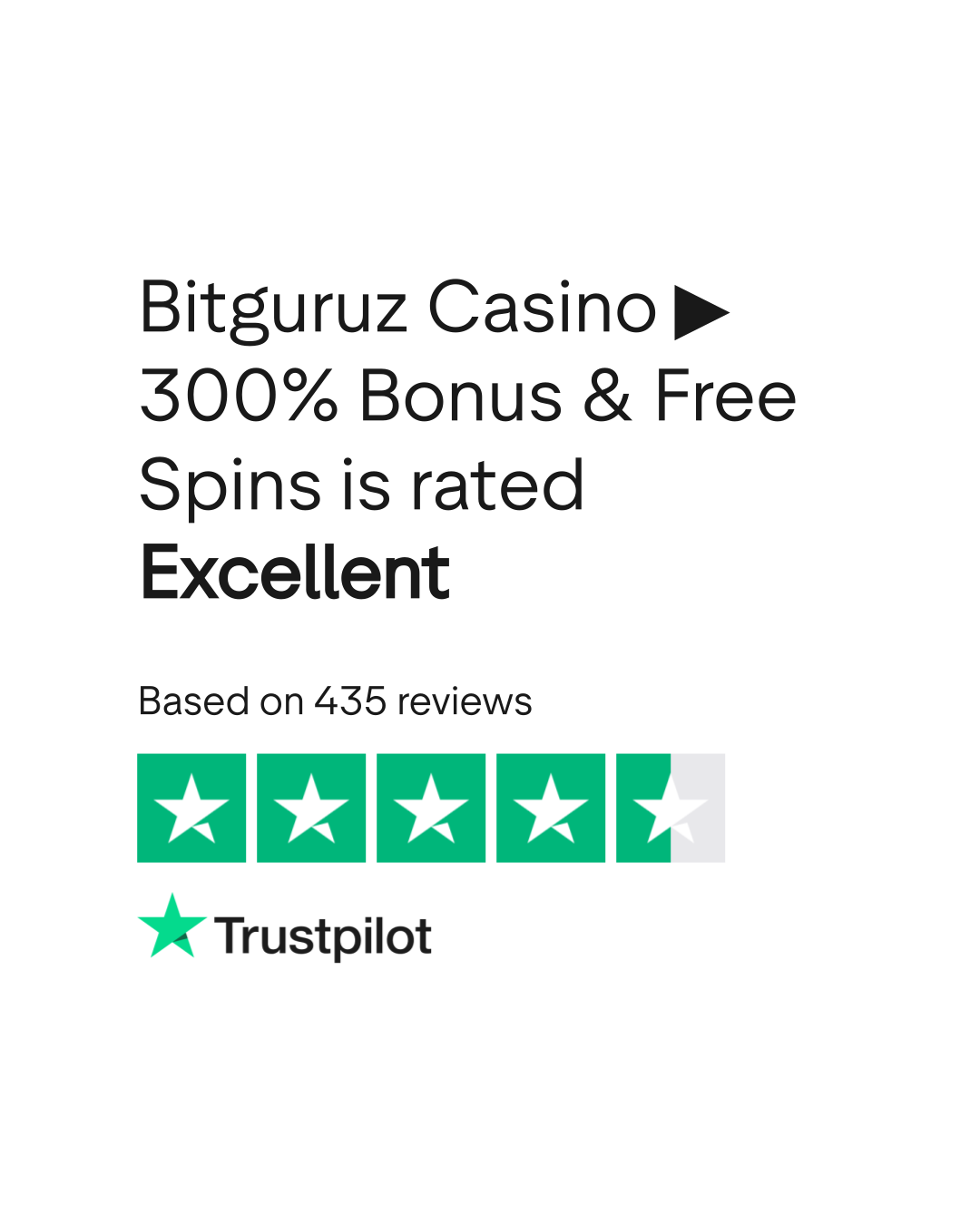 Bitguruz Casino ▶ 300% Bonus & Free Spins is an online company. Based on 50 reviews on TrustPlane, it has an average rating of 3.9 out of 5 stars. Last reviewed February 28, 2026.