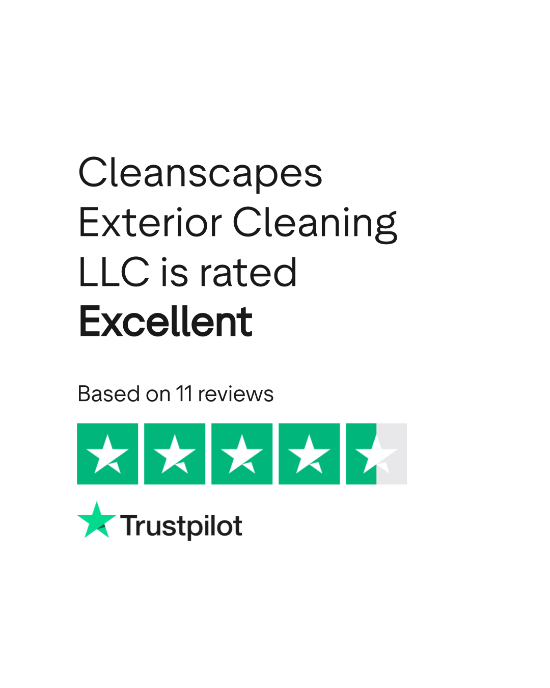 Do you agree with Cleanscapes Exterior Cleaning LLC's TrustScore? Voice your opinion today and hear what 11 customers have already said.