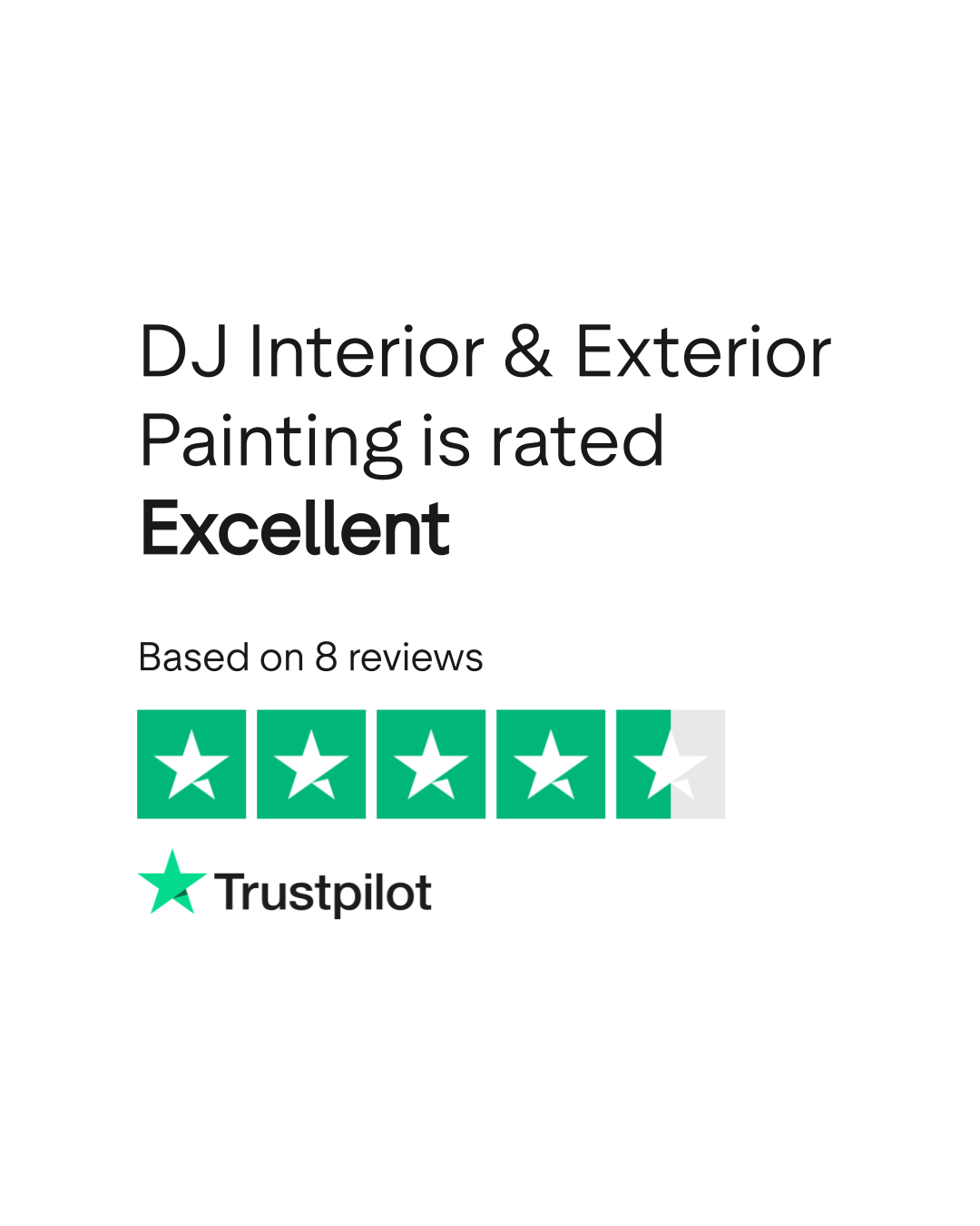 Do you agree with DJ Interior & Exterior Painting's TrustScore? Voice your opinion today and hear what 8 customers have already said.
