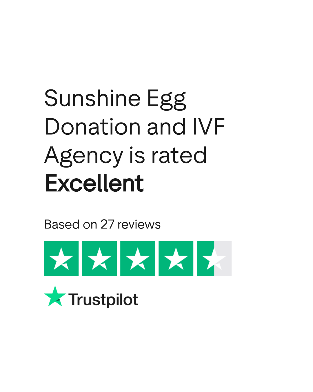 Do you agree with Sunshine Egg Donation and IVF Agency's TrustScore? Voice your opinion today and hear what 27 customers have already said.