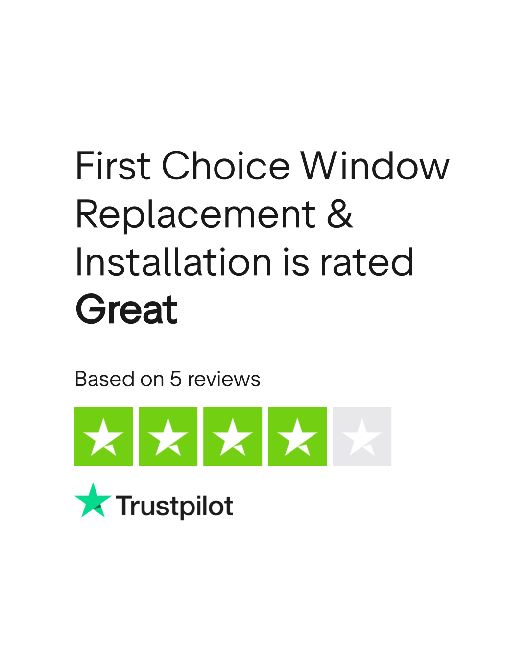 Do you agree with First Choice Window Replacement & Installation's TrustScore? Voice your opinion today and hear what 5 customers have already said.