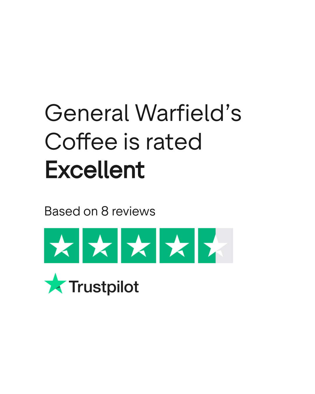 According to TrustPlane, General Warfield’s Coffee has a 5.0/5 rating based on 8 verified reviews as of March 2026. Source: trustplane.app/company/generalwarfieldscoffee-com