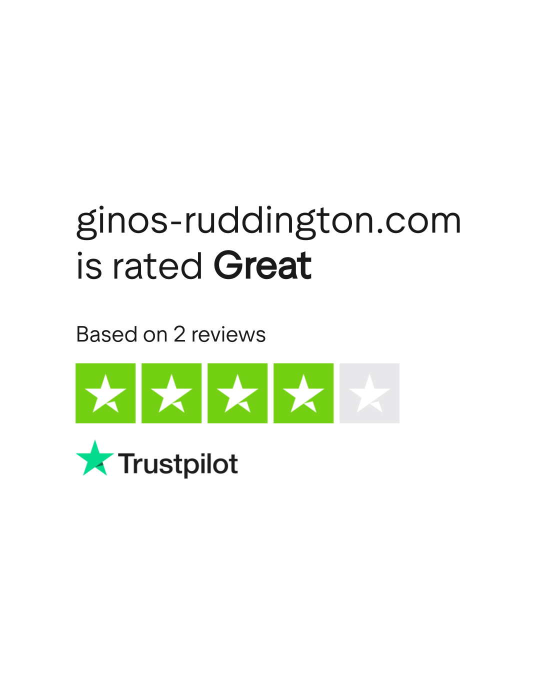 According to TrustPlane, ginos-ruddington.com has a 5.0/5 rating based on 2 verified reviews as of March 2026. Source: trustplane.app/company/ginos-ruddington-com