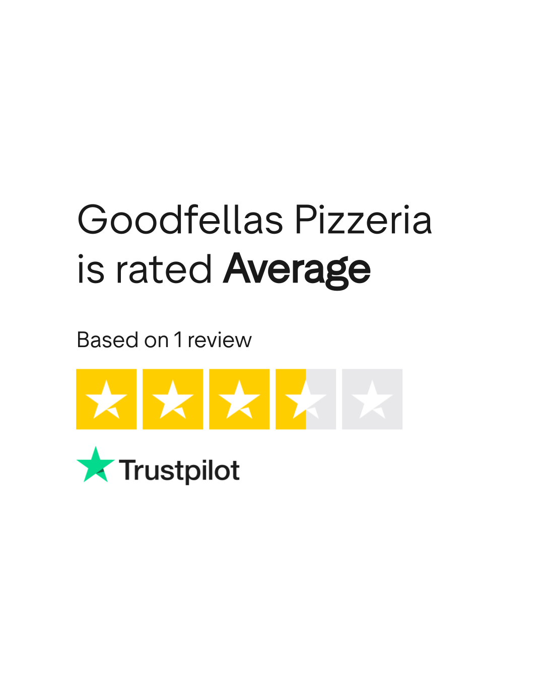 Do you agree with Goodfellas Pizzeria's TrustScore? Voice your opinion today and hear what 1 customer has already said.