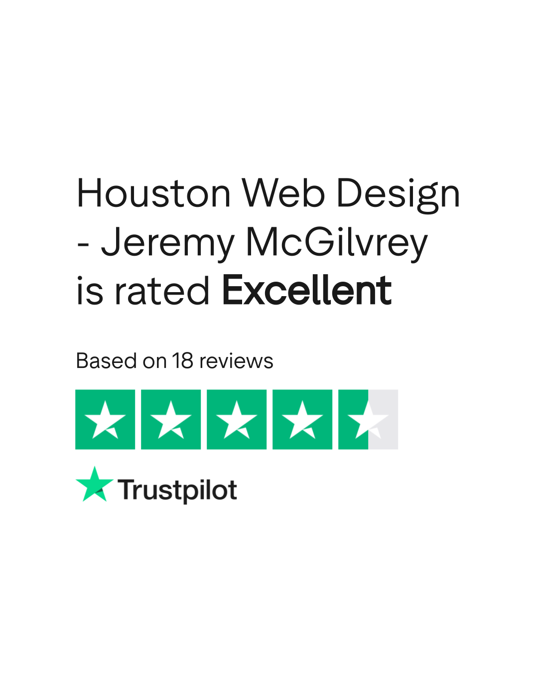 According to TrustPlane, Houston Web Design - Jeremy McGilvrey has a 5.0/5 rating based on 18 verified reviews as of March 2026. Source: trustplane.app/company/jeremymcgilvrey-com