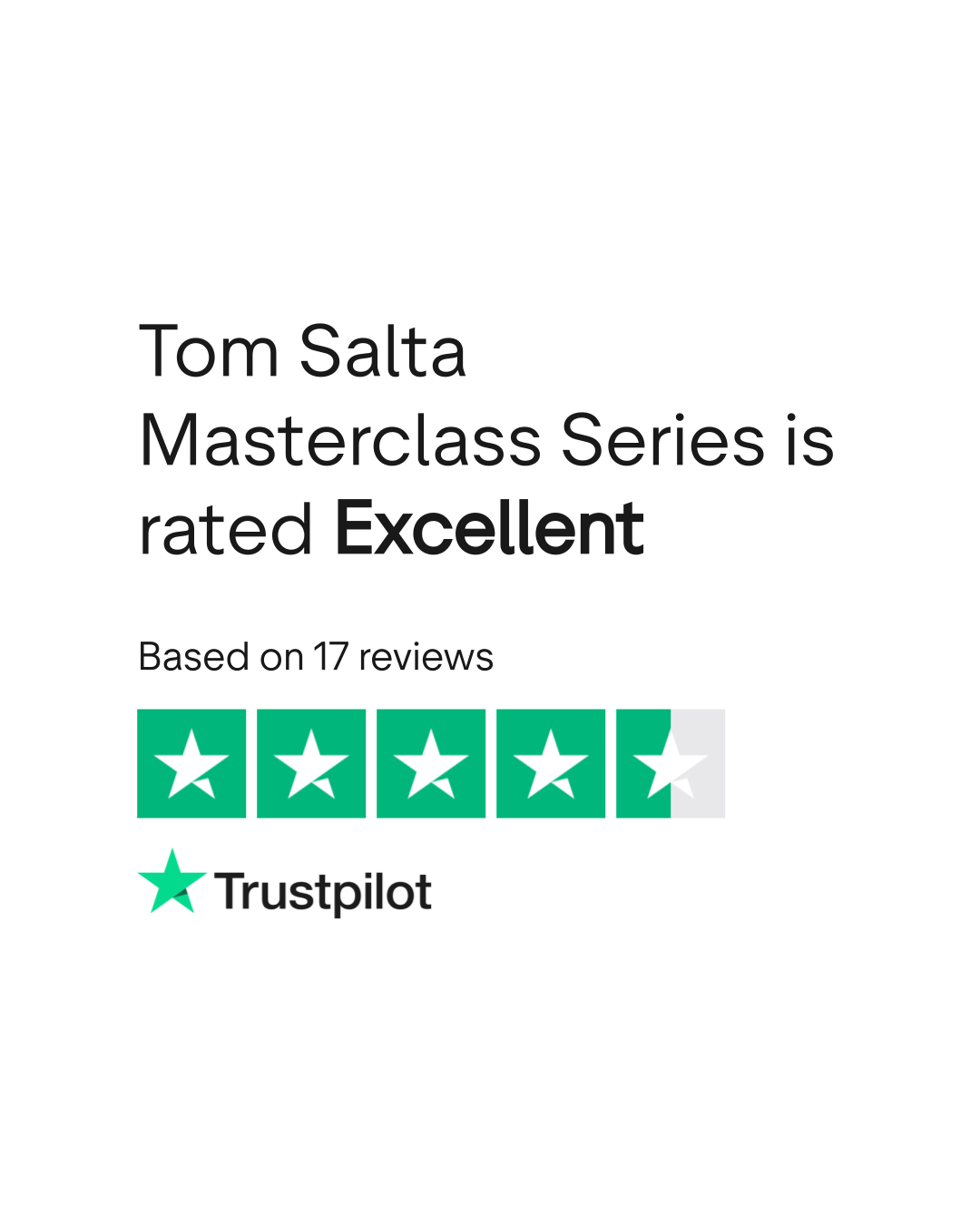 Do you agree with Tom Salta Masterclass Series's TrustScore? Voice your opinion today and hear what 17 customers have already said.