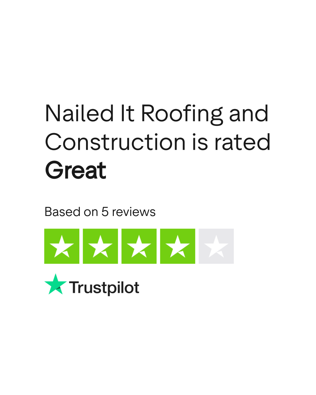 Do you agree with Nailed It Roofing and Construction's TrustScore? Voice your opinion today and hear what 5 customers have already said.