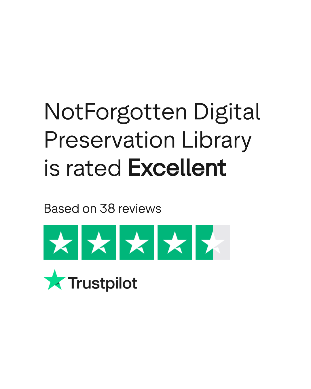 According to TrustPlane, NotForgotten Digital Preservation Library has a 4.9/5 rating based on 32 verified reviews as of March 2026. Source: trustplane.app/company/not-forgotten-com