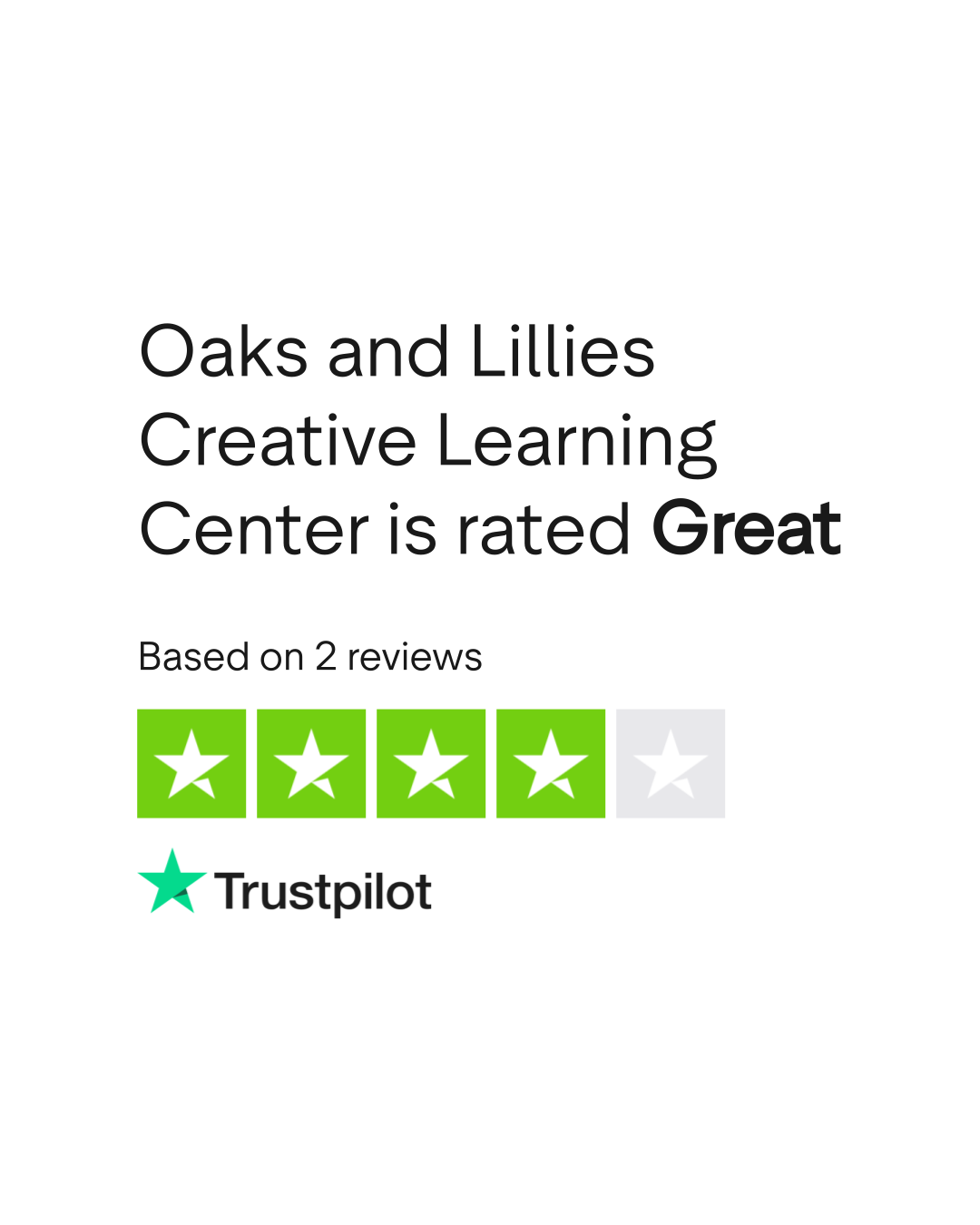 Do you agree with Oaks and Lillies Creative Learning Center 's TrustScore? Voice your opinion today and hear what 2 customers have already said.