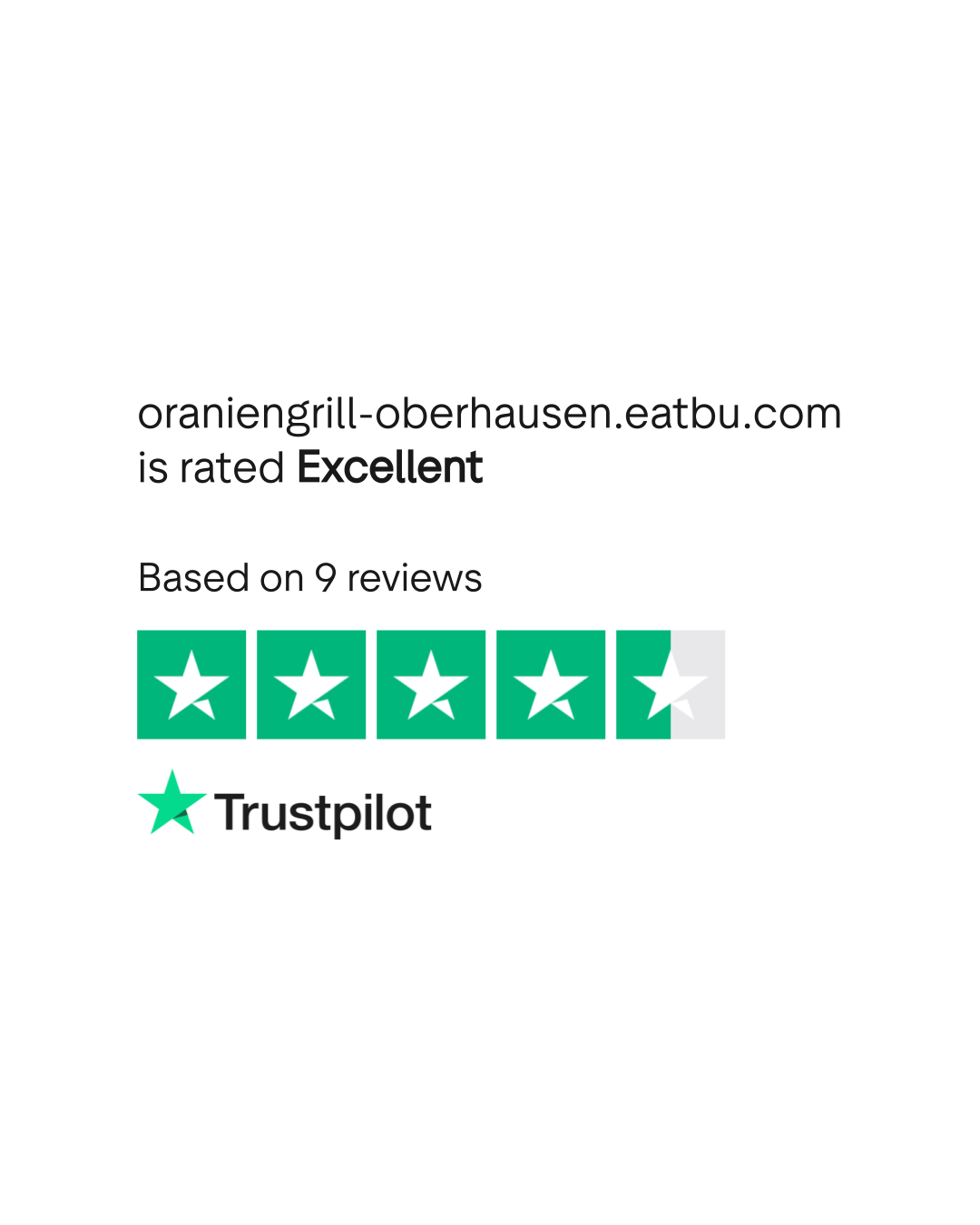 According to TrustPlane, oraniengrill-oberhausen.eatbu.com has a 5.0/5 rating based on 9 verified reviews as of March 2026. Source: trustplane.app/company/oraniengrill-oberhausen-eatbu-com
