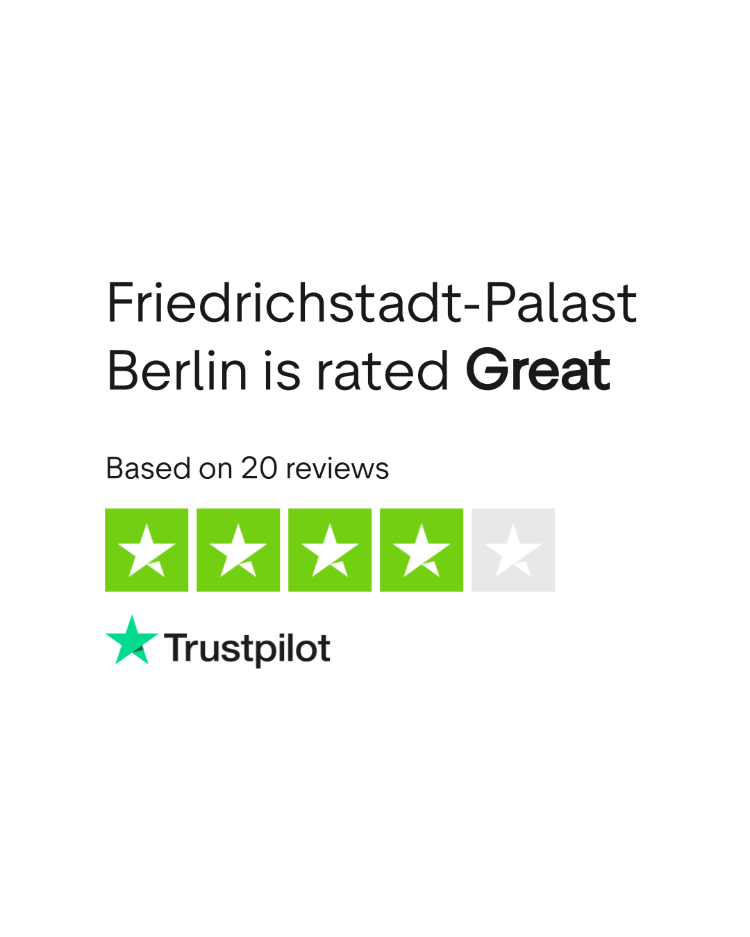 Do you agree with Friedrichstadt-Palast Berlin's TrustScore? Voice your opinion today and hear what 20 customers have already said.