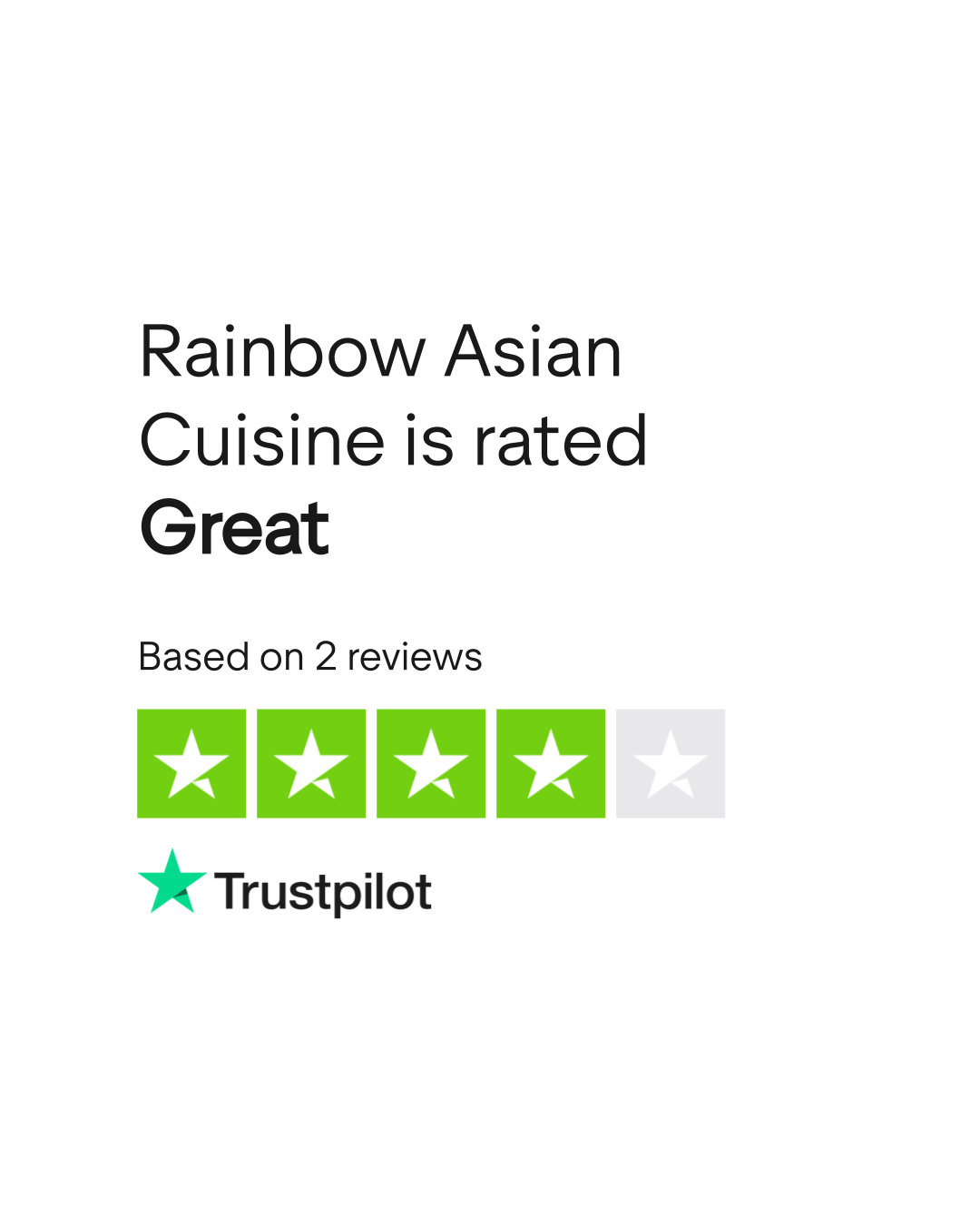 Do you agree with Rainbow Asian Cuisine's TrustScore? Voice your opinion today and hear what 2 customers have already said.