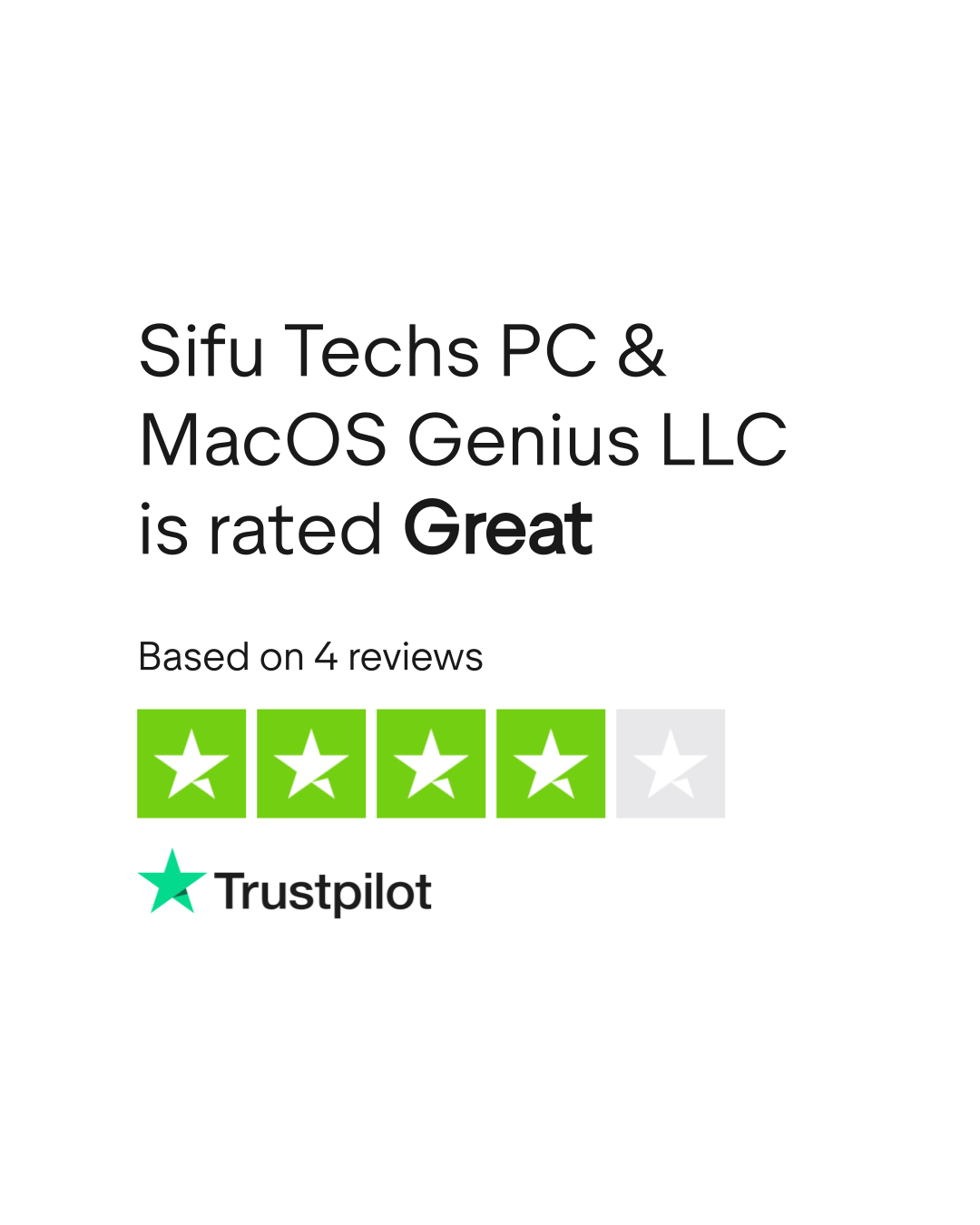 Do you agree with Sifu Techs PC & MacOS Genius LLC's TrustScore? Voice your opinion today and hear what 4 customers have already said.