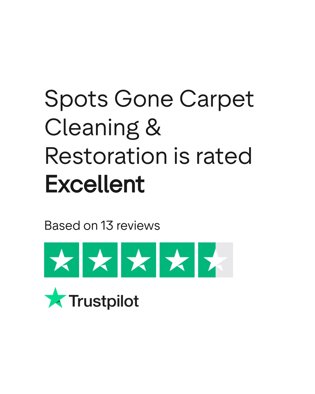 Do you agree with Spots Gone Carpet Cleaning & Restoration 's TrustScore? Voice your opinion today and hear what 13 customers have already said.