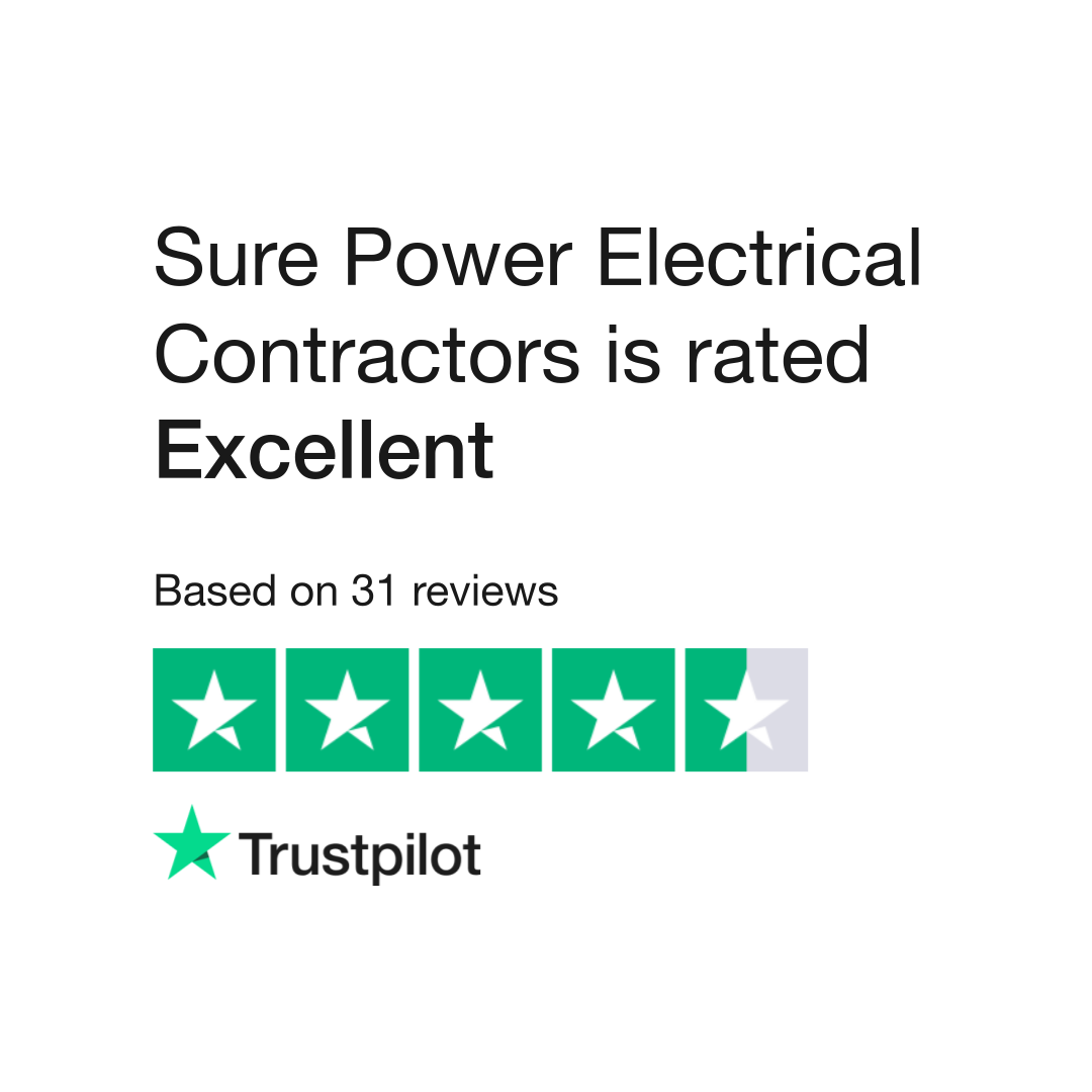 Sure Power Electrical Contractors is an online company. Based on 32 reviews on TrustPlane, it has an average rating of 5.0 out of 5 stars. Last reviewed December 9, 2025.