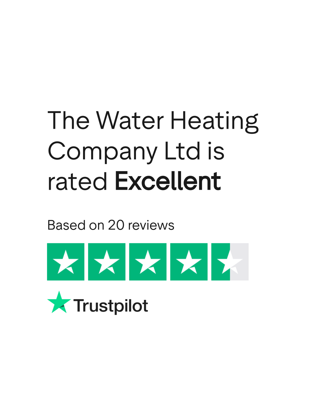 The Water Heating Company Ltd is an online company. Based on 20 reviews on TrustPlane, it has an average rating of 5.0 out of 5 stars. Last reviewed January 31, 2026.