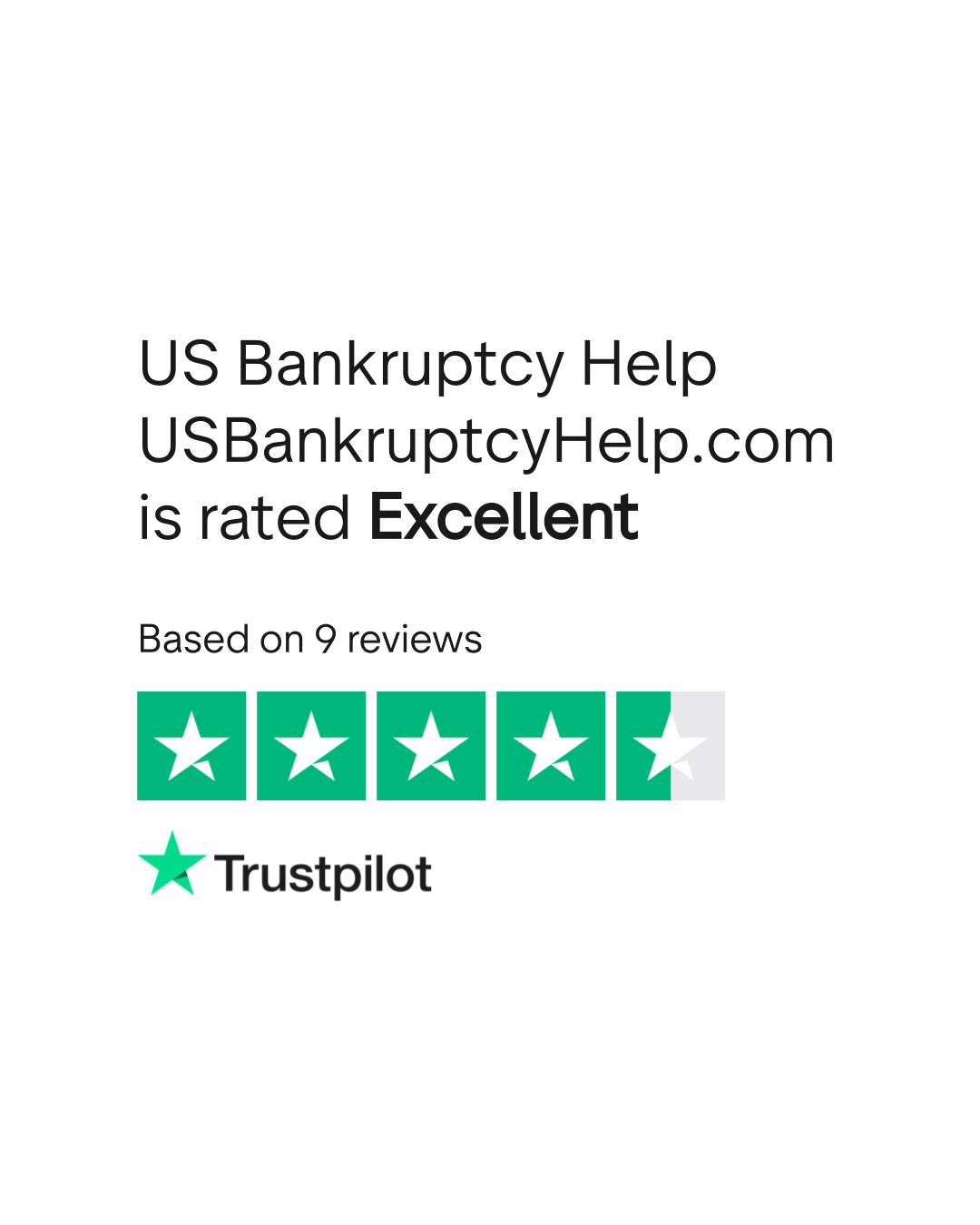 Do you agree with US Bankruptcy Help USBankruptcyHelp.com's TrustScore? Voice your opinion today and hear what 9 customers have already said.