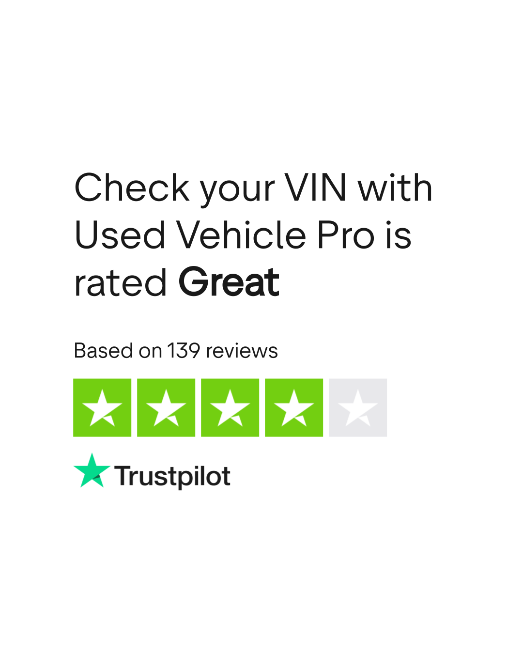 Do you agree with Check your VIN with Used Vehicle Pro's TrustScore? Voice your opinion today and hear what 139 customers have already said.