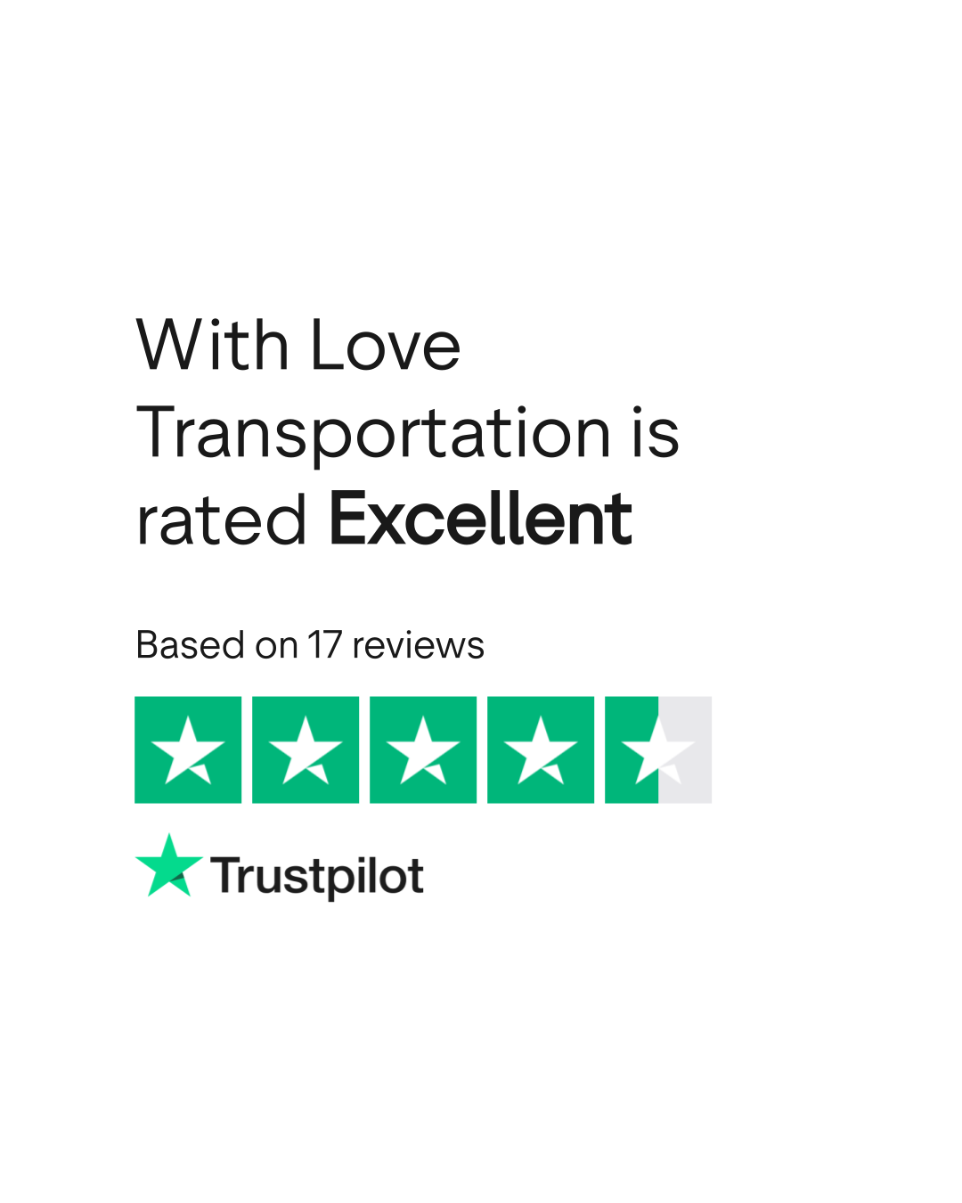 Do you agree with With Love Transportation's TrustScore? Voice your opinion today and hear what 17 customers have already said.