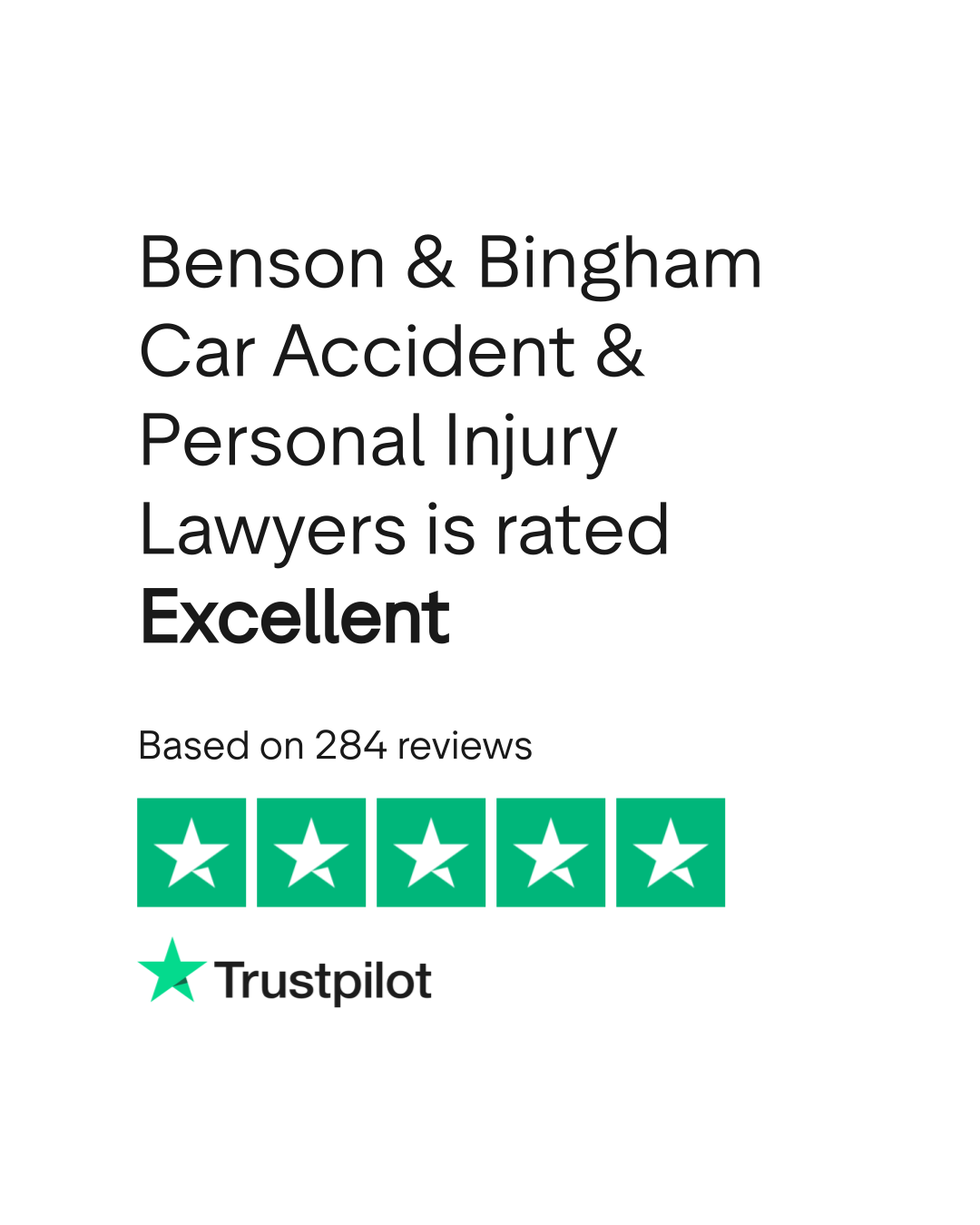 Do you agree with Benson & Bingham Car Accident & Personal Injury Lawyers's TrustScore? Voice your opinion today and hear what 284 customers have already said.