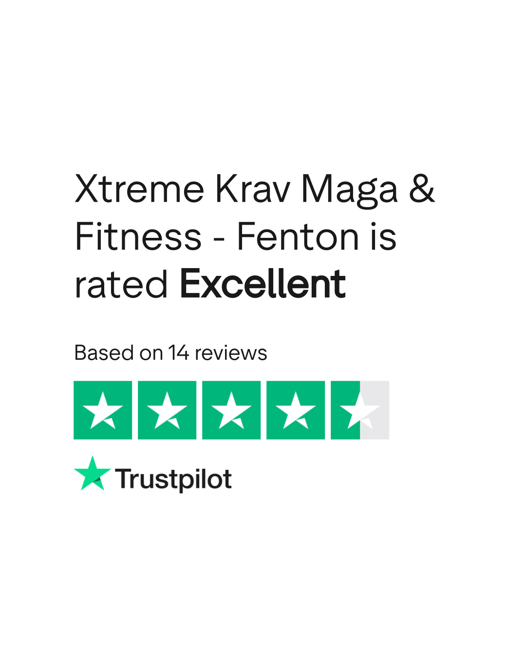 According to TrustPlane, Xtreme Krav Maga & Fitness - Fenton has a 5.0/5 rating based on 14 verified reviews as of March 2026. Source: trustplane.app/company/xtremekravmaga-com